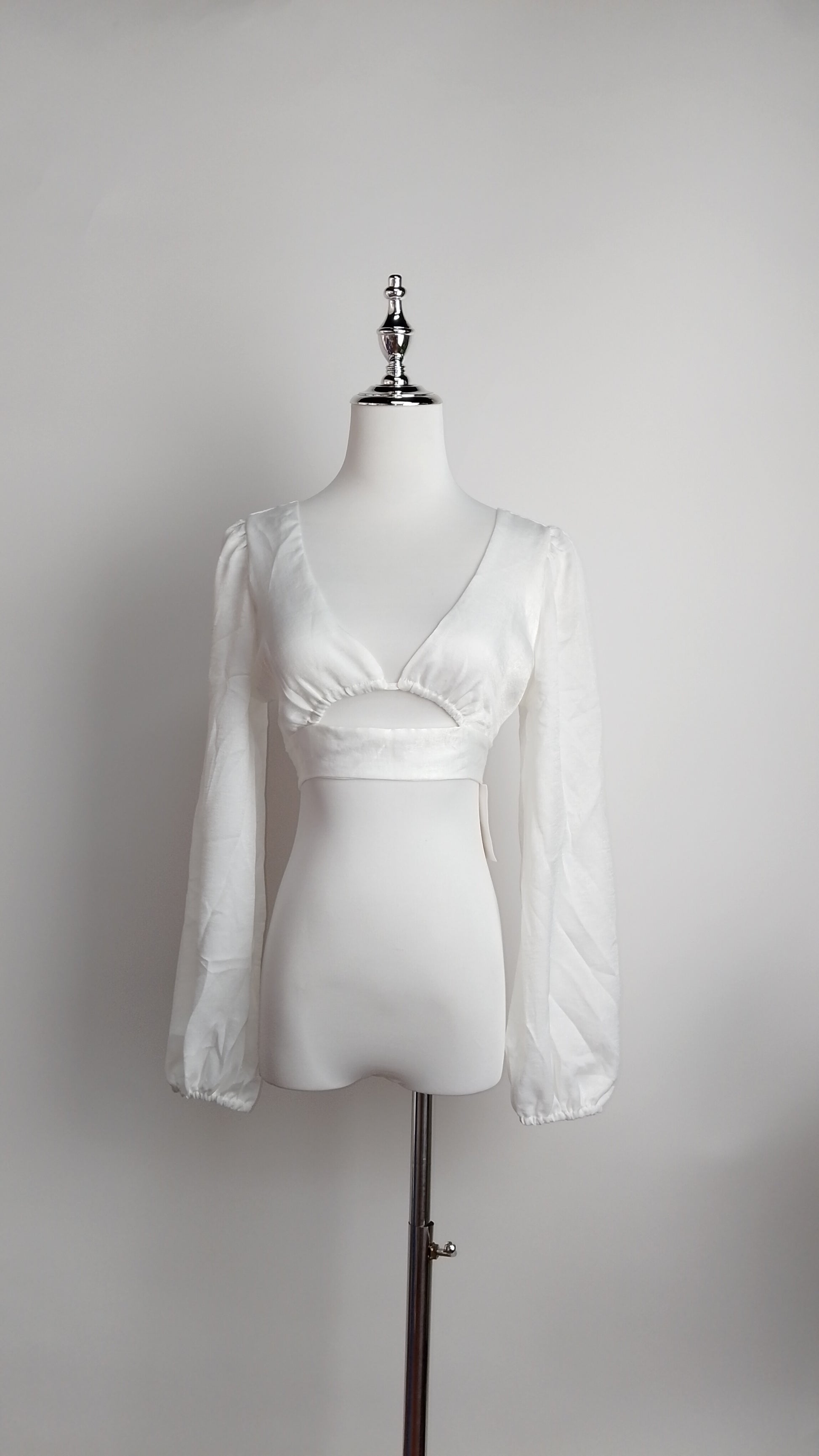 Blusa blanca de manga larga con ajuste entallado y escote redondo. Ideal para un look limpio y minimalista.