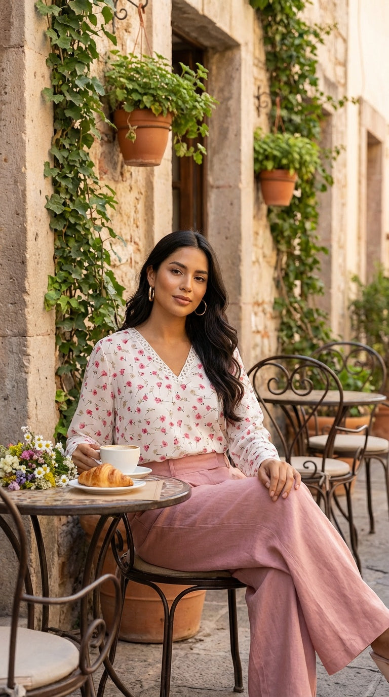 Blusa blanca con estampado floral delicado y manga larga. Femenina y versátil.