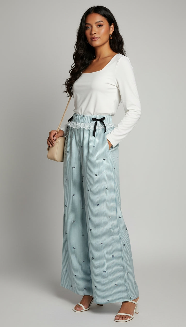 Pantalón claro con corte relajado, ideal para looks diurnos.