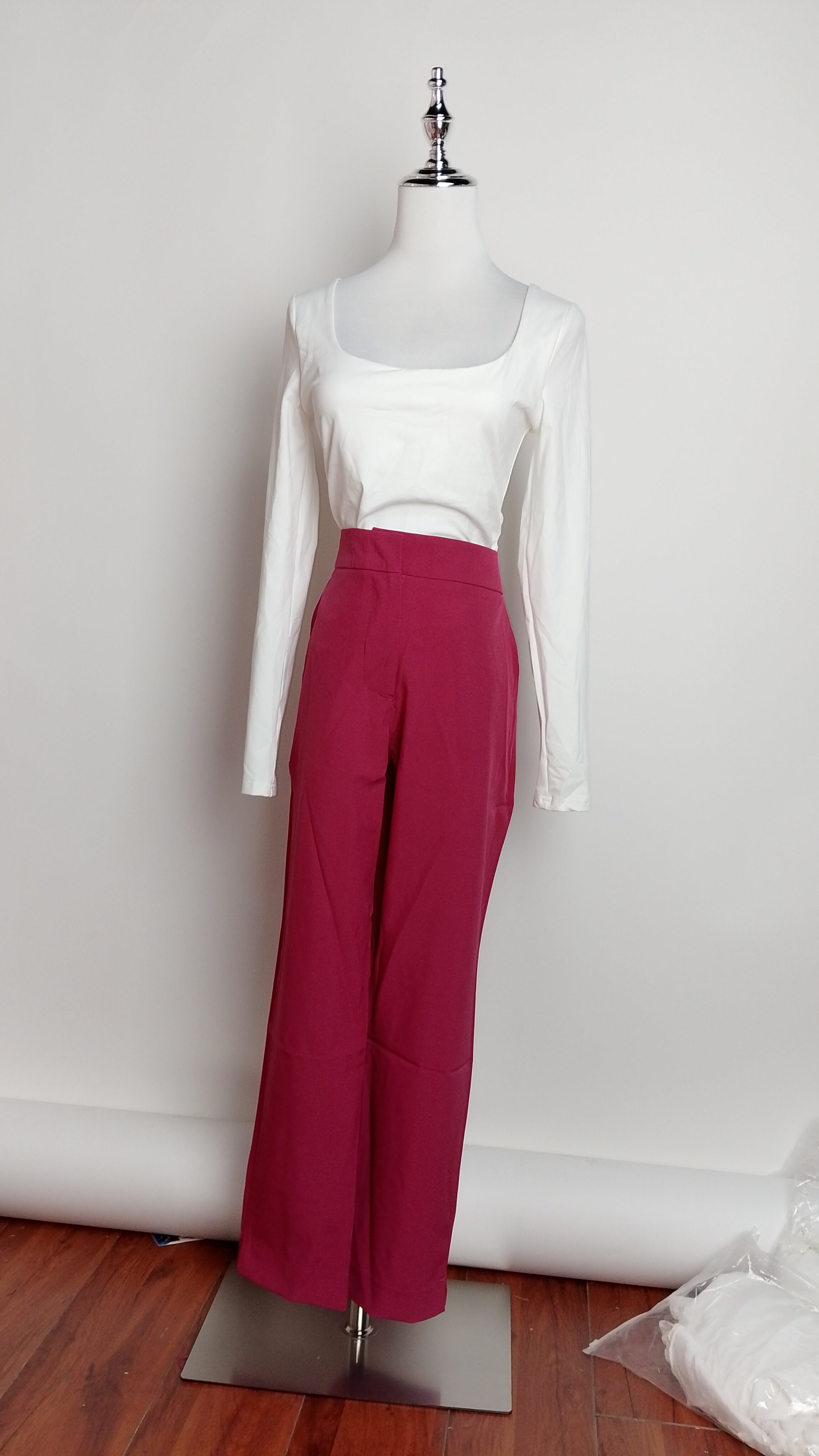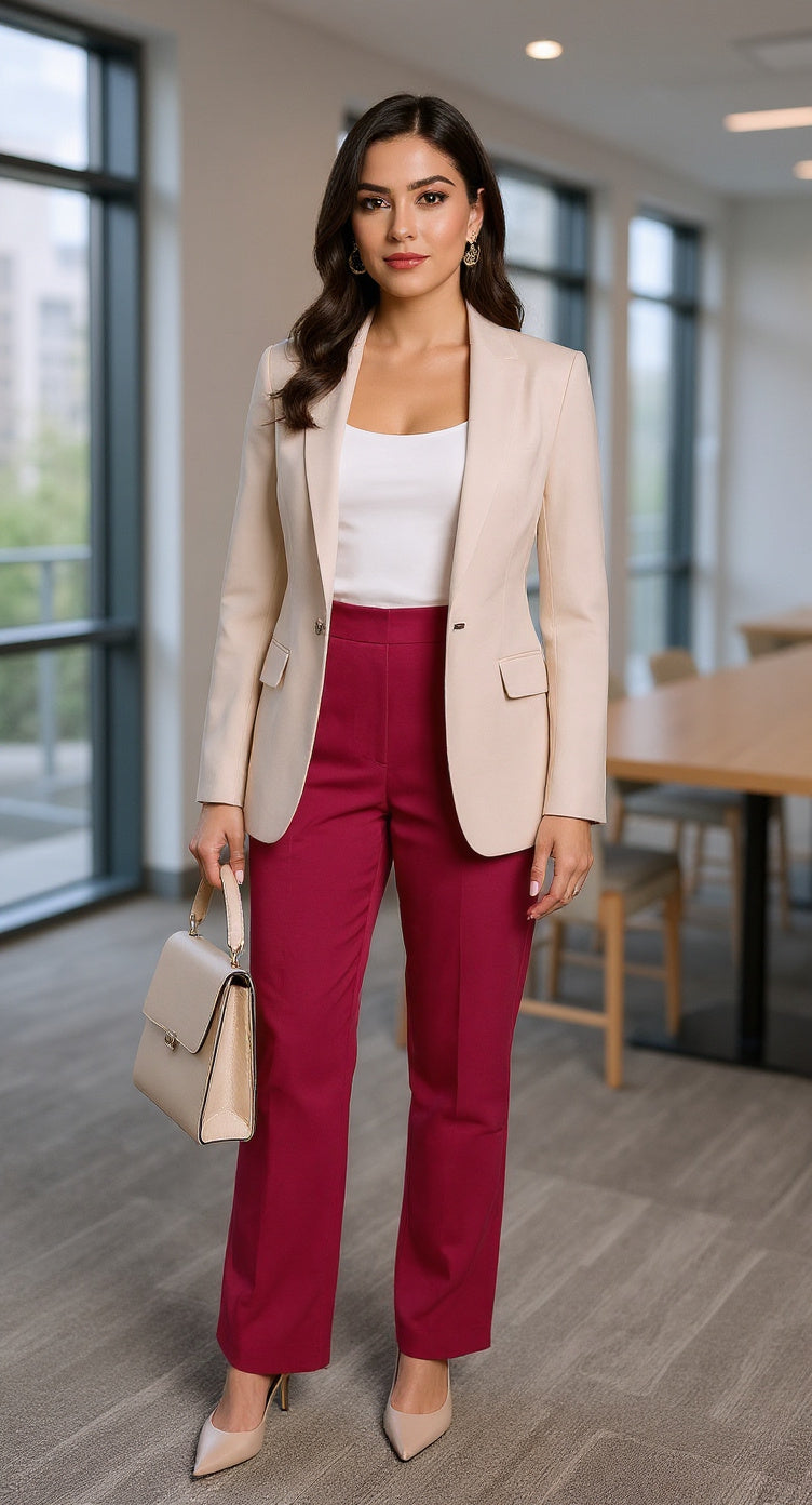 Pantalón recto color vino con tiro alto. Elegante y fácil de combinar.