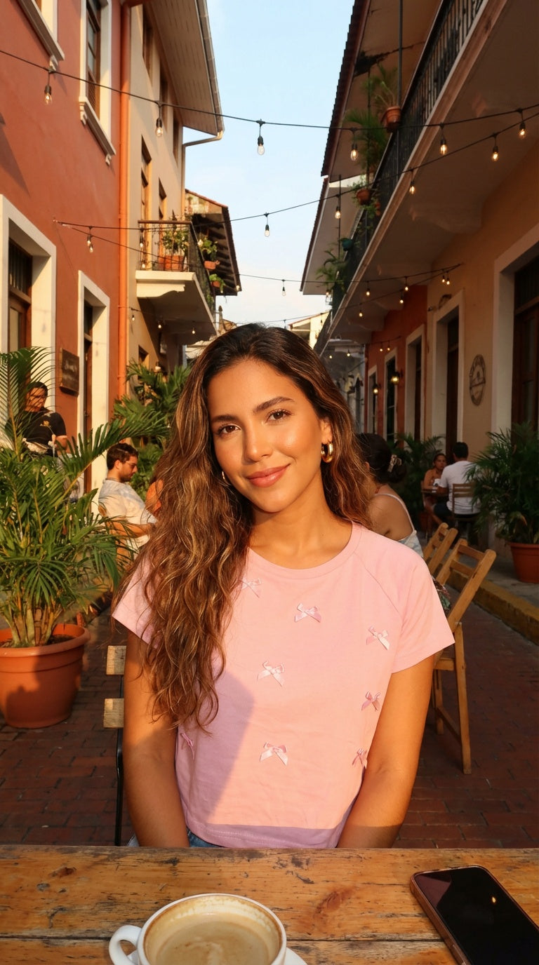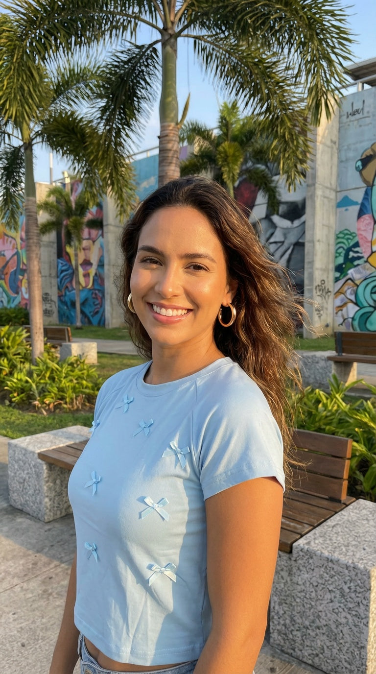 Top claro de manga corta, básico y versátil para looks diarios.