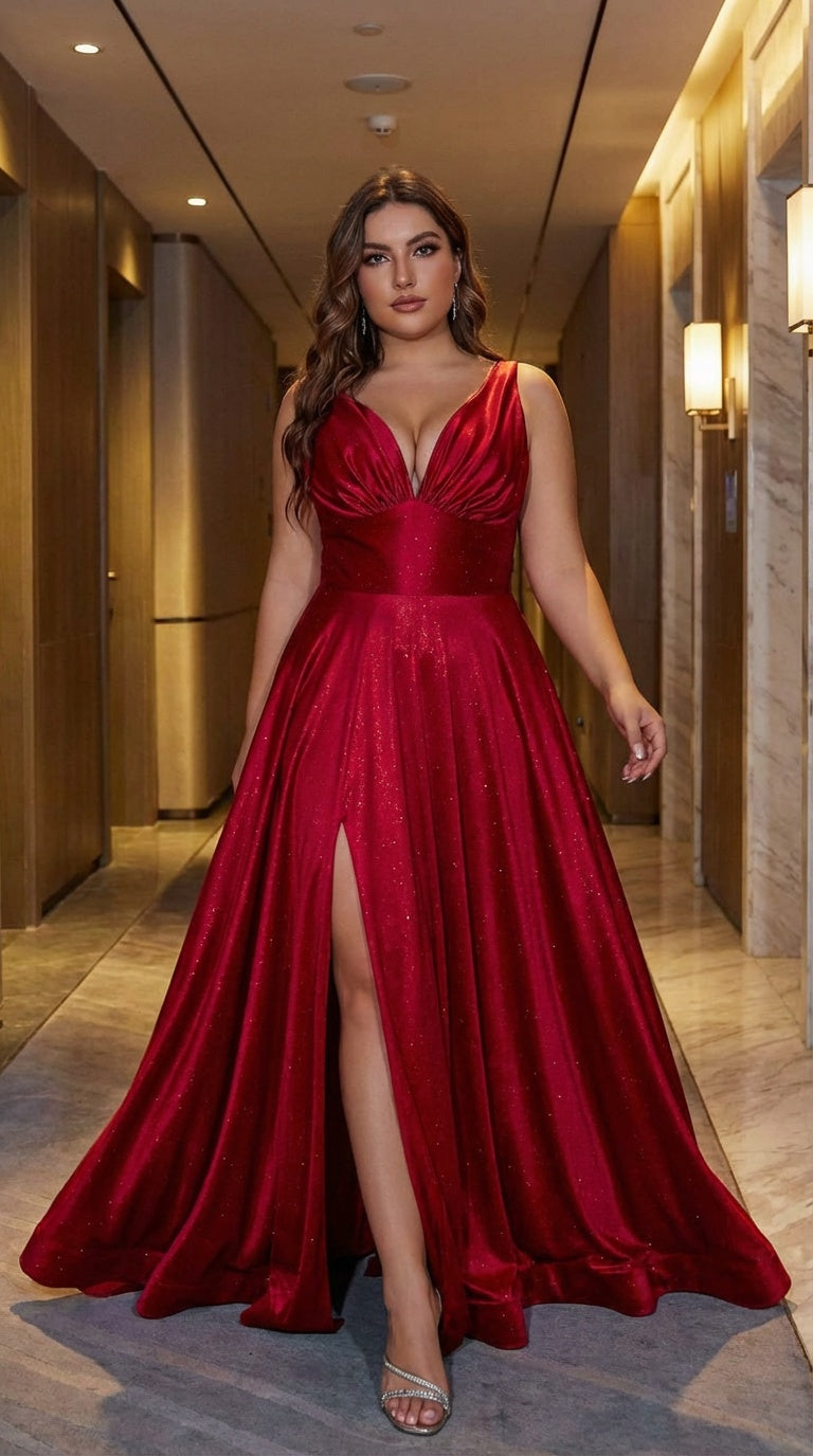 De punto elástico satinado con volantes, para invitada de boda, vestido formal, vestido de fiesta y de noche, talla grande