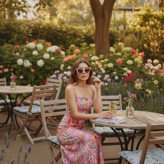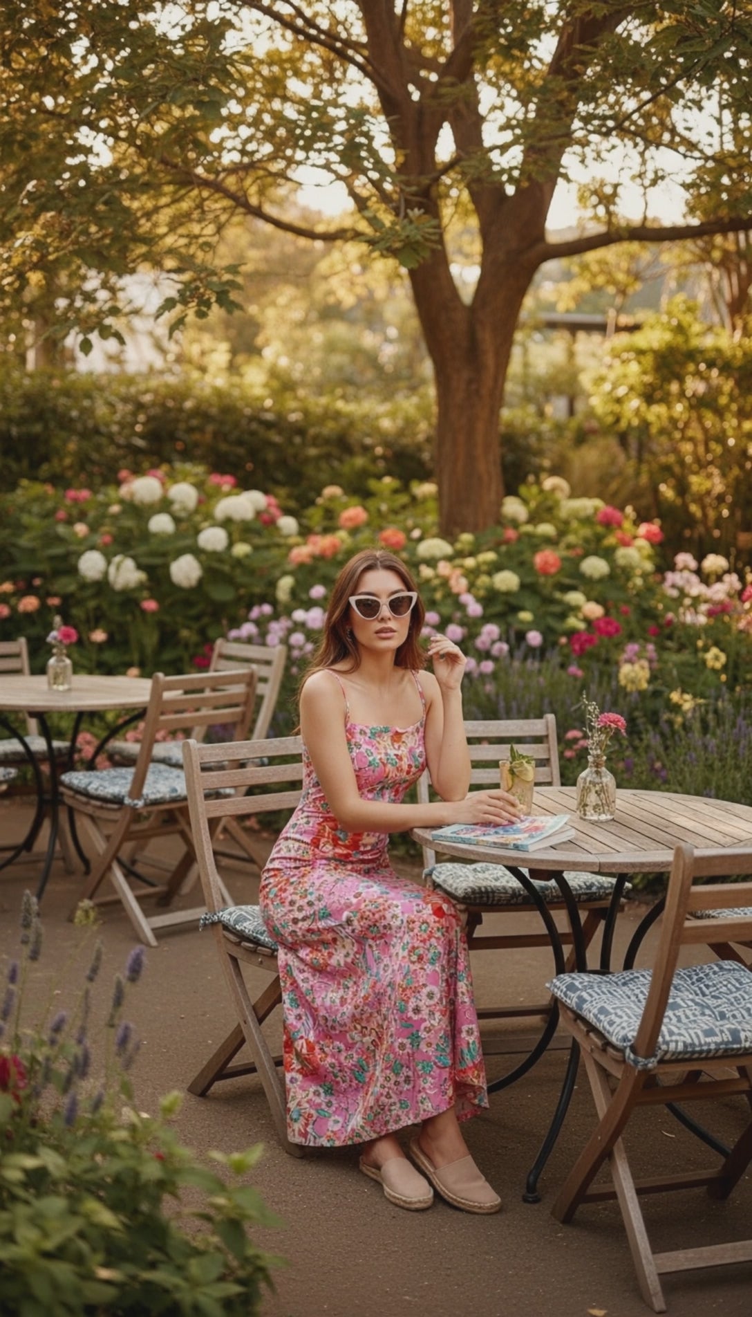 Vestido largo con estampado floral multicolor y tiras finas. Estilo boho, fresco y elegante.