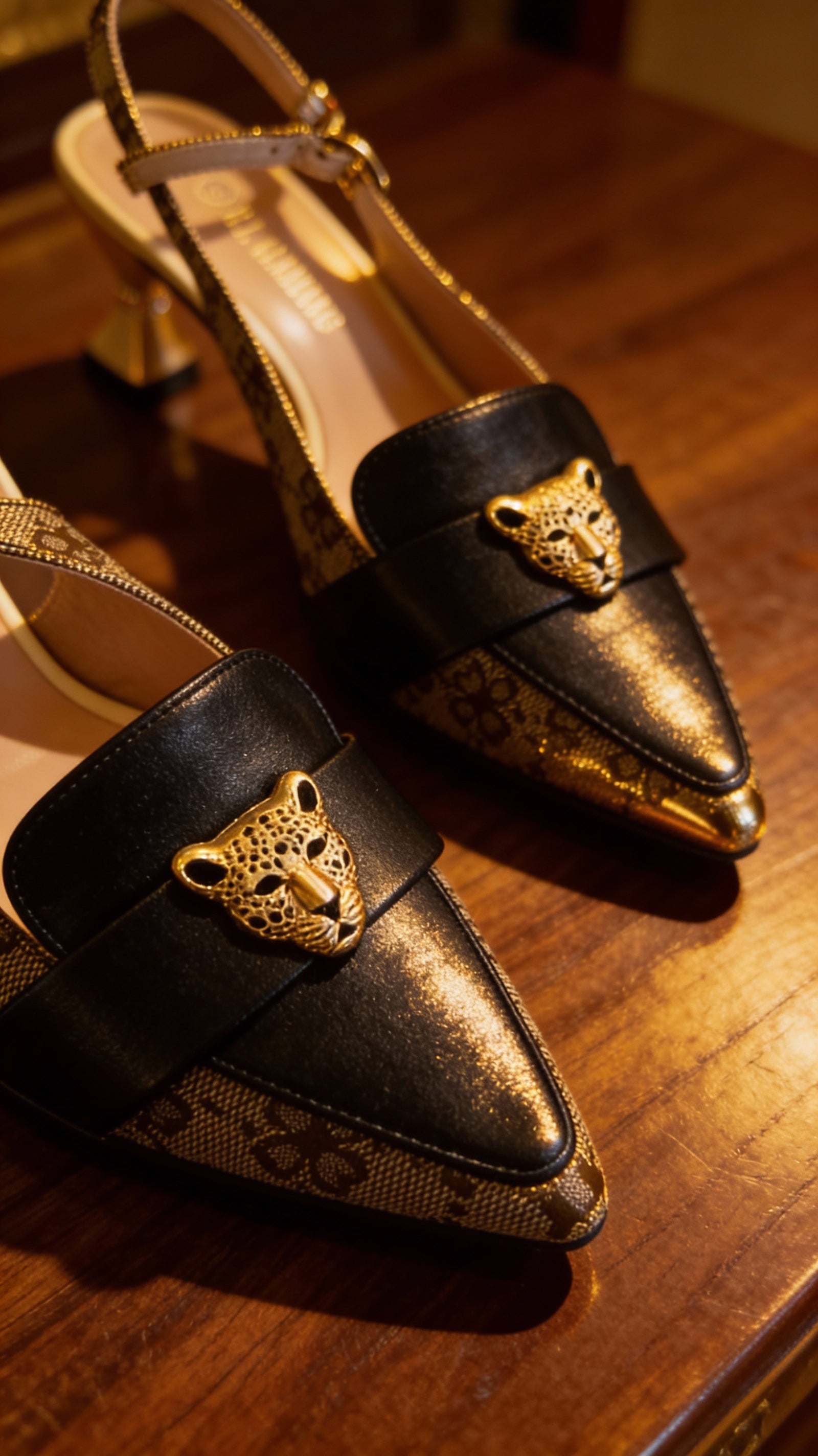 | Zapatos tradicionales con toque especial metálico. |