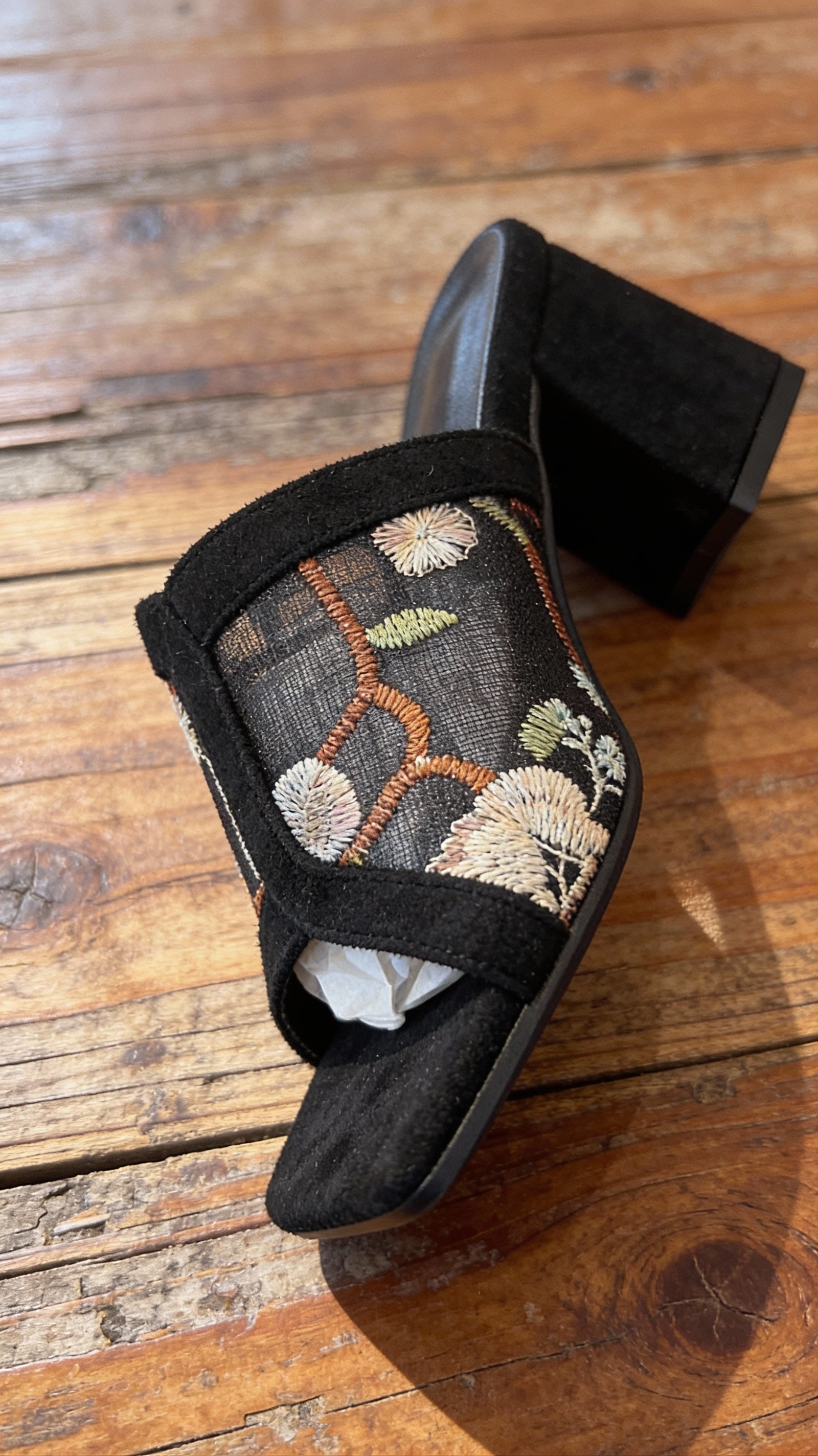 | Zapatos negros con detalle bordado refinado. |